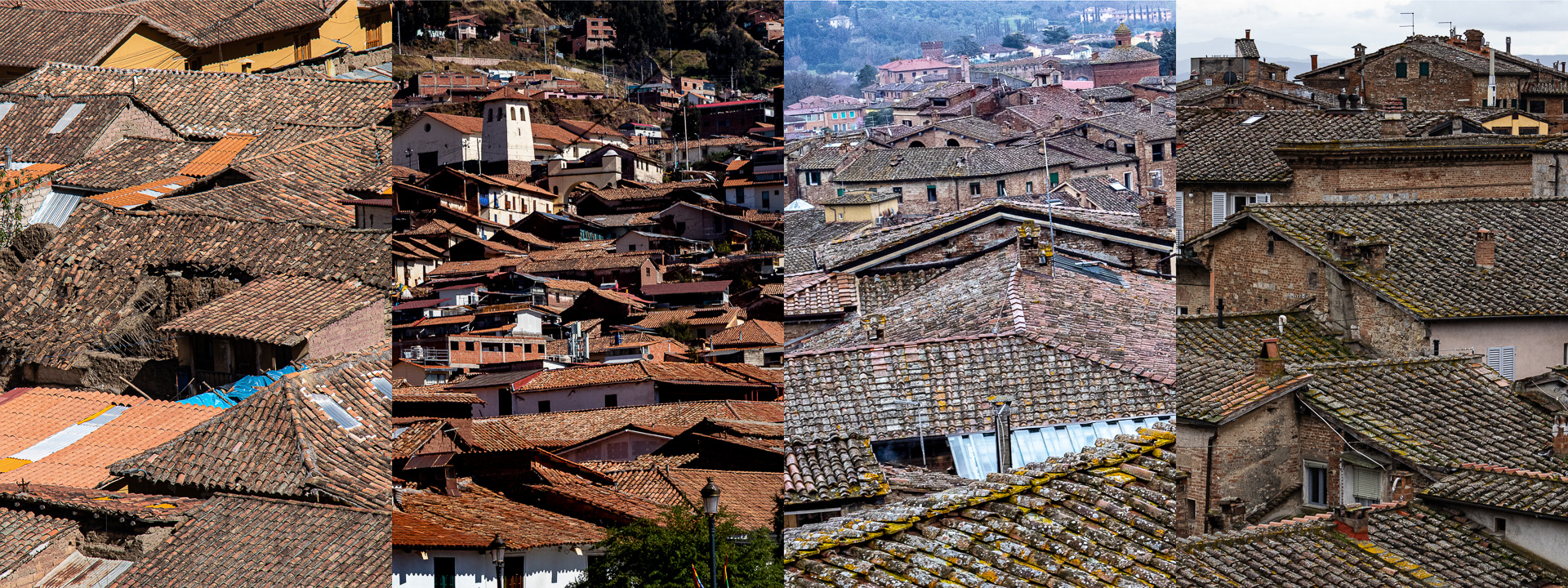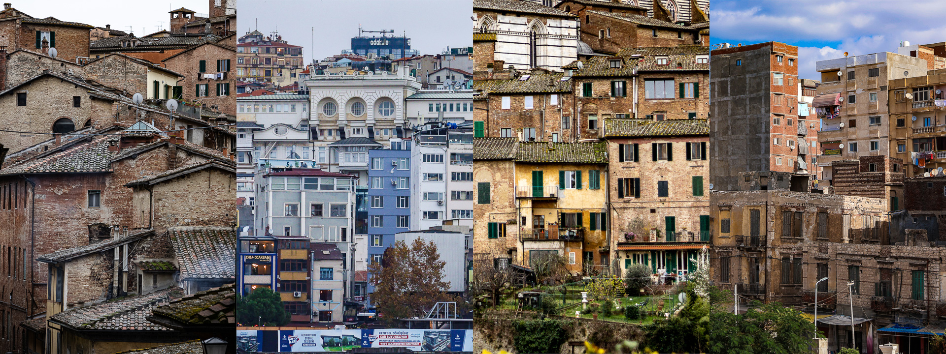 No poema Hablo de la Ciudad, Octavio Paz trata a cidade moderna como um labirinto, construído por camadas de tempo onde ruína e presente coexistem. Como Dédalo, Alessandra Almeida constrói com fotografias seu próprio labirinto: sua cidade (ou todas as cidades). Dentro do hexágono iluminado, figura geométrica e regular, as fotografias de fachadas e telhados superpostos nos desorientam, e expõem a contradição entre a vontade de ordem (o polígono, o diagrama) e a realidade histórica do construir (a solução local, o remendo, a adição); entre a vontade individual e a força coletiva. No centro deste labirinto, a artista nos confronta com um paradoxo: estamos em um espaço interior construído inteiramente por exteriores, um dentro feito de foras. Representação das grandes cidades onde o público e o privado muitas vezes se chocam. Onde Habitamos não nos dá um atlas turístico, mas um campo de restos heterogêneos que se friccionam. Florianópolis, Istambul, Cairo, Alexandria, Siena, Capadócia, Liubliana, Luxor, Cusco e Lima formam um emaranhado de superfícies que mais escondem do que revelam e tornam-se signo da cidade que se faz por montagem e sobreposições, que nos engendra e nos devora.