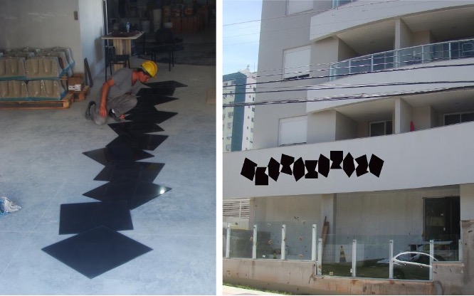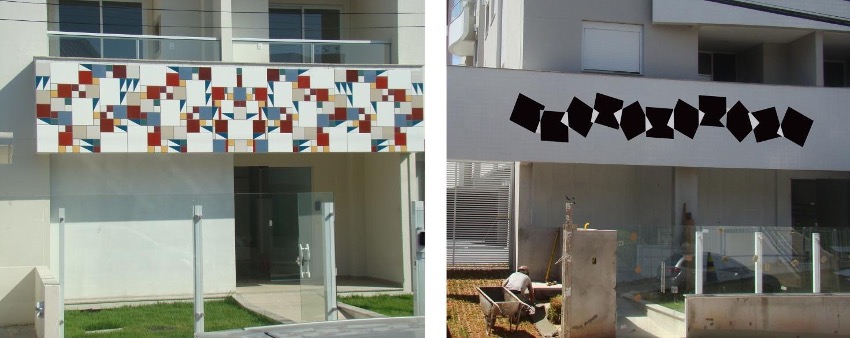 Um mural na fachada de um prédio de habitação popular, no bairro de Bela Vista, em Florianópolis, é realizado em 2015 pela artista visual Cassia Aresta, que usou cerâmicas garimpadas num cemitério de azulejos e orientou os trabalhadores da construção quanto ao corte em diferentes ângulos e tamanhos, bem como em relação a sua montagem. Colocando a arte no cotidiano urbano e no espaço público de modo mais acessível, o trabalho faz a arquitetura conversar com a história das formas geométricas, presentes desde as cestarias indígenas até a história da pintura no Brasil.